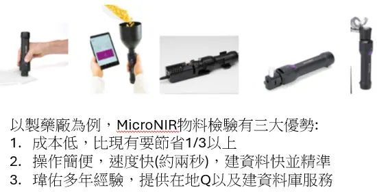 瑋佑科技自Viavi 的MicroNIR上市多年以來,在台灣推廣了許多的測試驗證的實例。而在全球發展的速度更快,逐漸取代了原有桌上型的昂貴又不好使用的機台;越來越多的應用實例增加中。歡迎大家來洽詢,不論食品,化工,生化,飼料,牧場等等,尤其在製藥方面,MicroNIR帶給物料ID以及線上直接量測非常大的幫助!